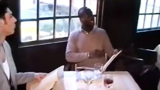 Two friends arrive in a restaurant, one black and one white. The service seems long to them. Normal a new cook, a pretty brunette with beautiful little tits is being eaten pussy by her boss in the middle of the kitchen. The beautiful hot bitch will accept the advances of these two clients who will enjoy her pussy and ass in turn. The bitch takes a good look and is going to get two good doses of sperm in her mouth.