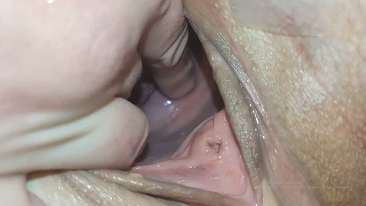 I stretch my pussy as wide as possible so that my cervix is visible. In the finale there is sex on all fours and cum on the ass. Close-up, stretching, wet pussy, doggy style and moaning