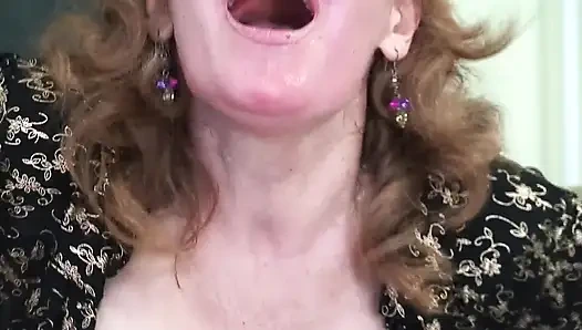 Yaşlı kadın yüksek sesle seviyor ve ağzı kanepede bitiyor