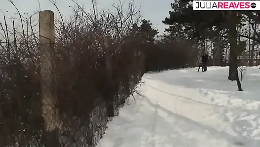 SEXY REDHEAD RIDES A HARD COCK OUT IN THE COLD SNOW