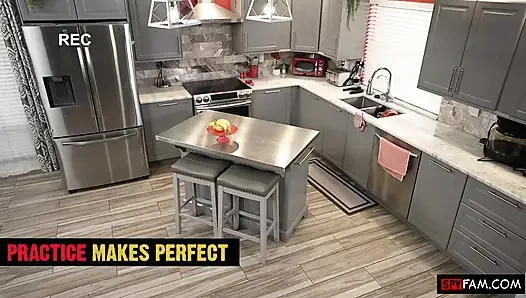 Üvey baba Chloe Rose'un şişman yarağını ödünç almasına izin veriyor